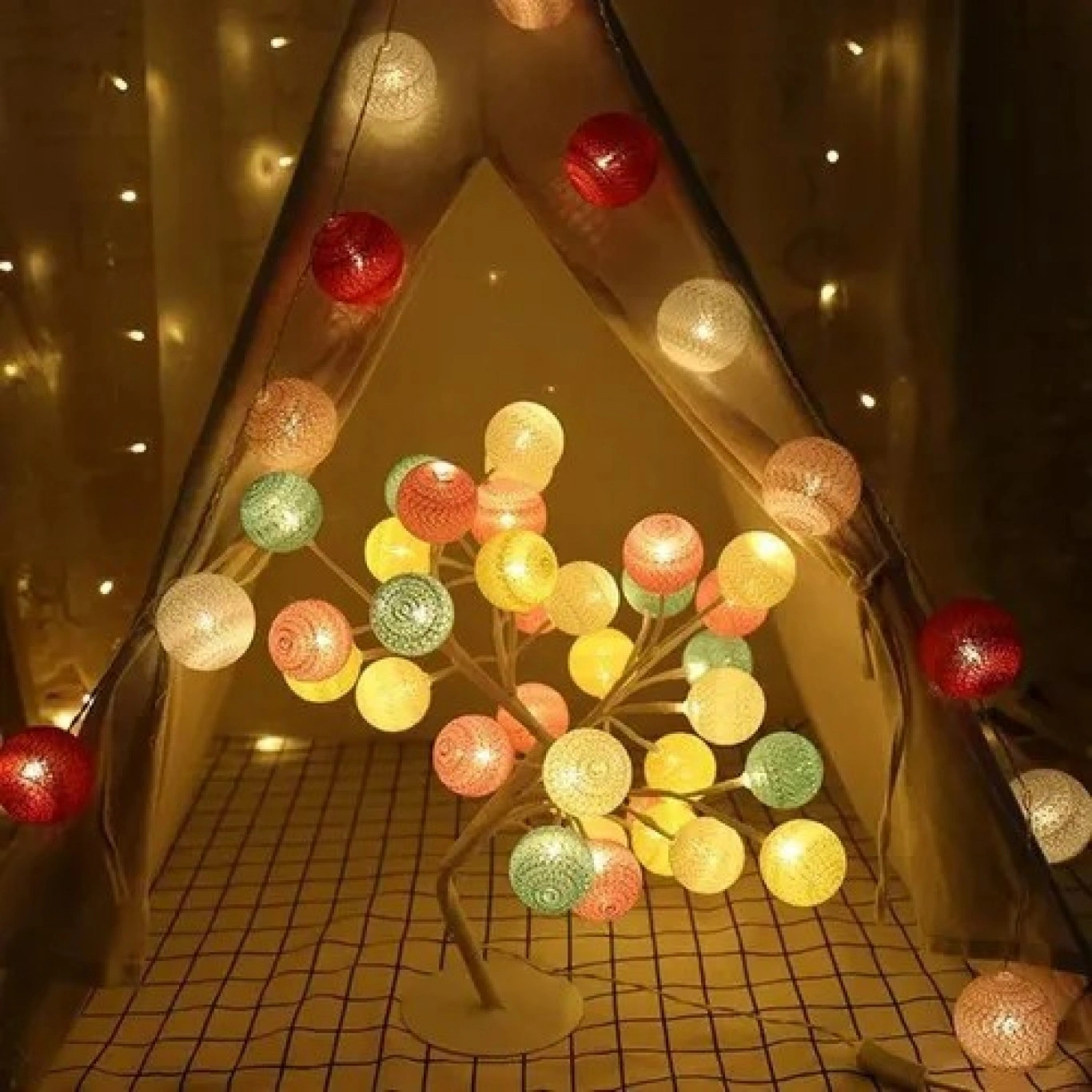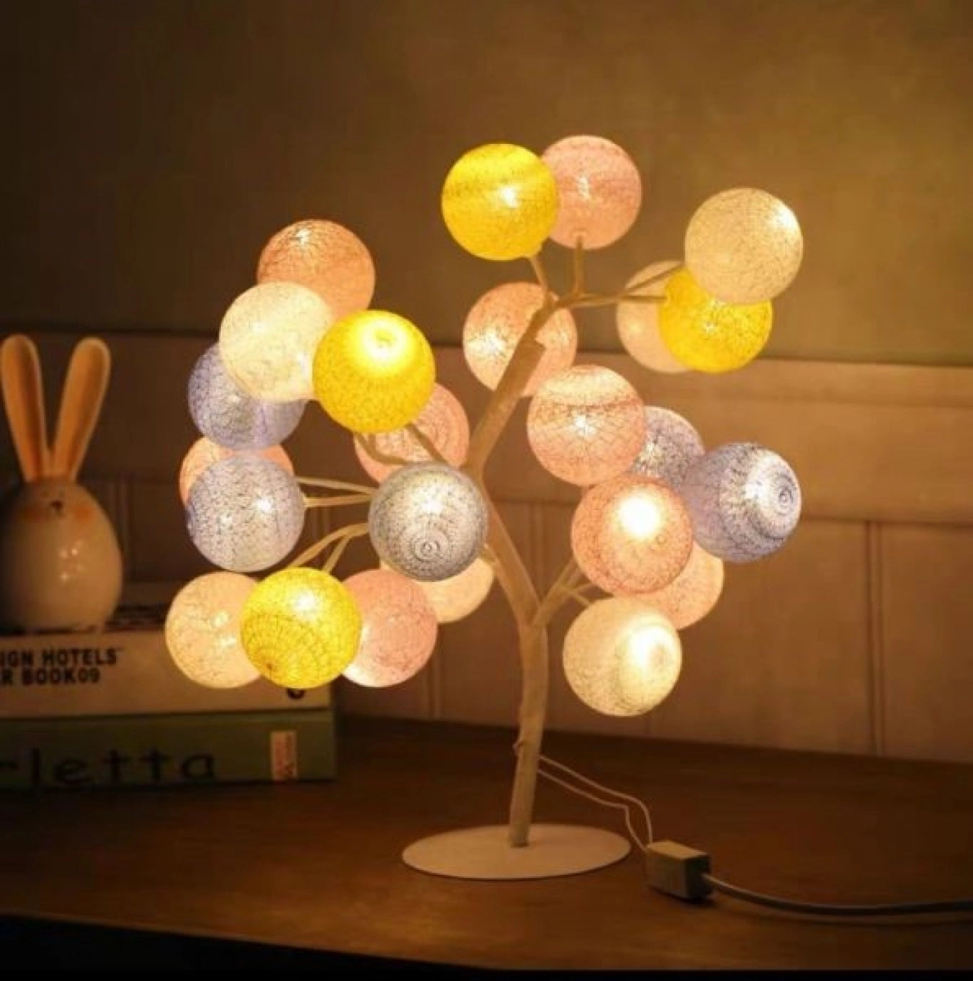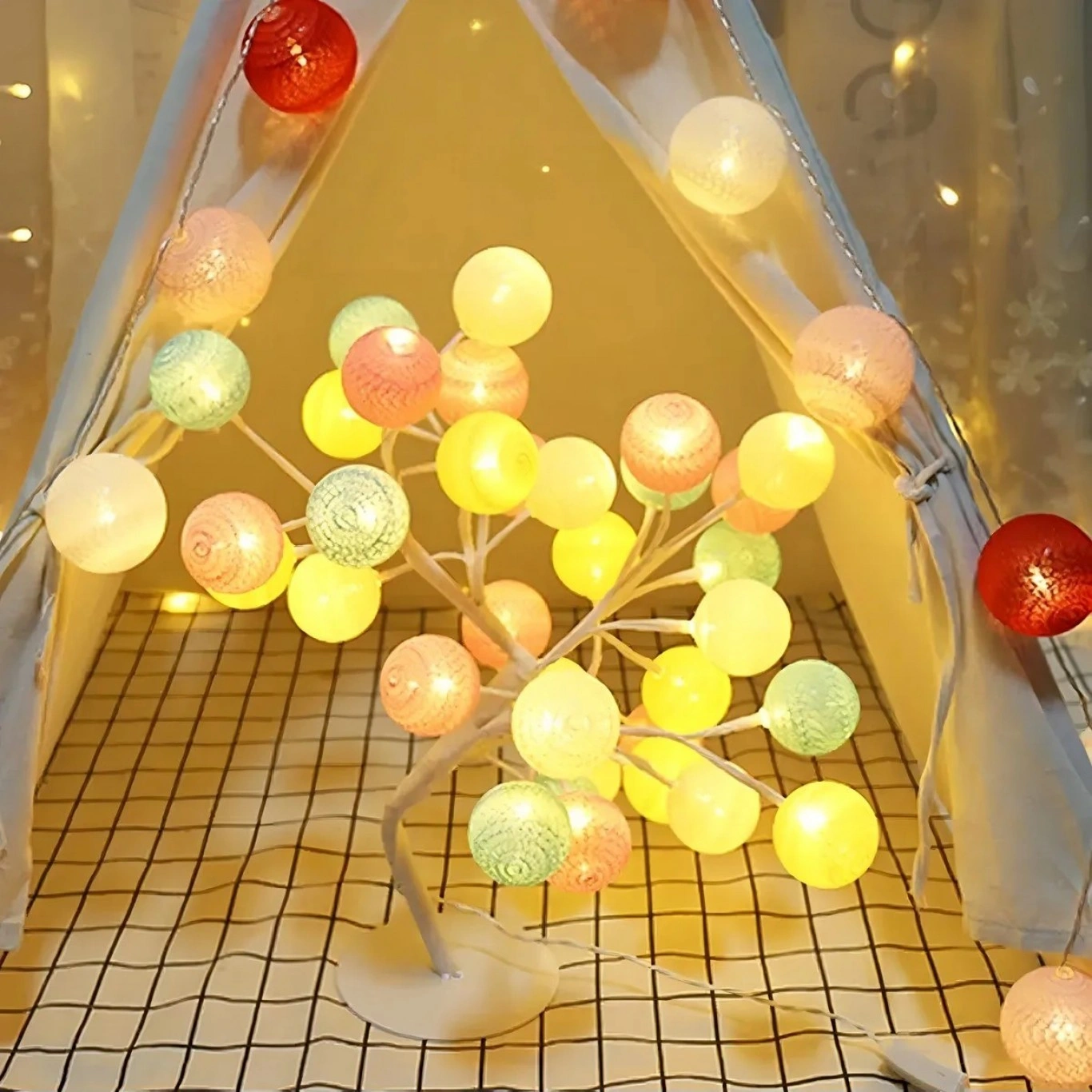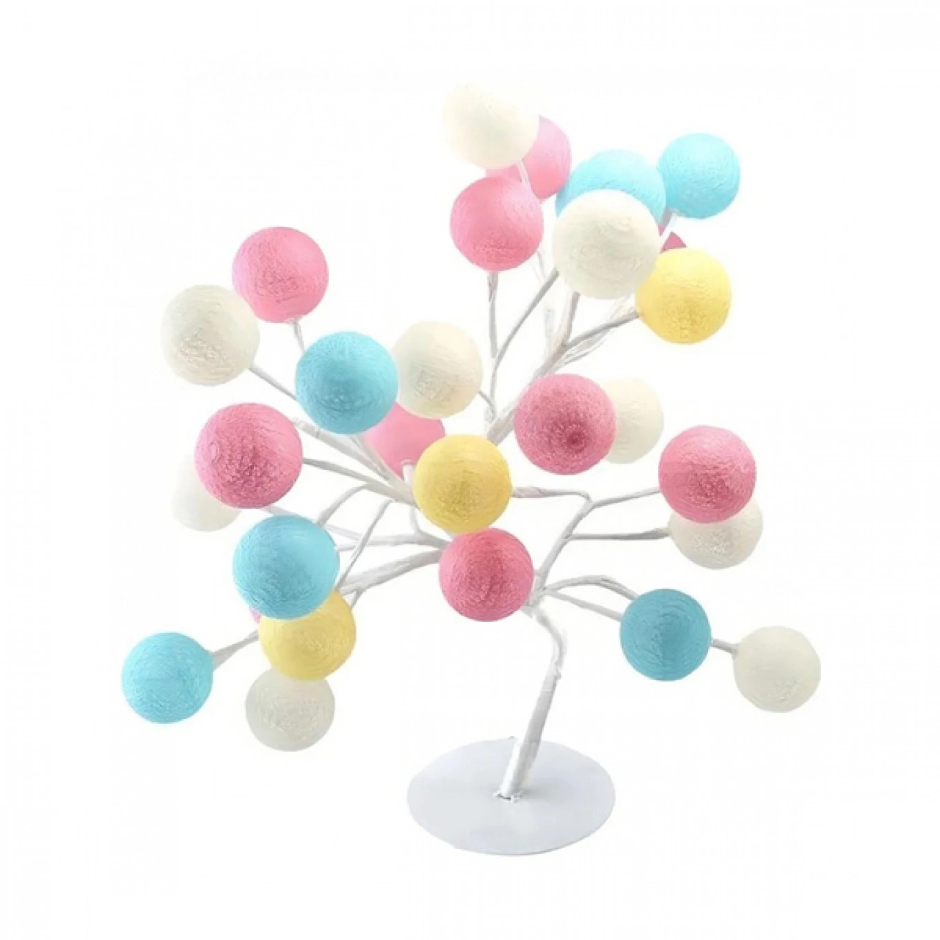 ✔️Οι πολύχρωμες μπάλες σε ροζ, κίτρινο, μπλε και λευκό διαχέουν το φως ομοιόμορφα, προσφέροντας παιχνιδιάρικο και ρομαντικό αποτέλεσμα. Ο λεπτός κορμός και η σταθερή βάση θυμίζουν μίνι δέντρο, προσδίδοντας φυσική και καλλιτεχνική πινελιά στη διακόσμηση.
